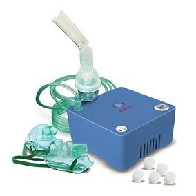 Преобразование жидкого лекарственного препарата в мелкодисперсный аэрозоль происходит под действием струи воздуха, нагнетаемого малогабаритным компрессором.